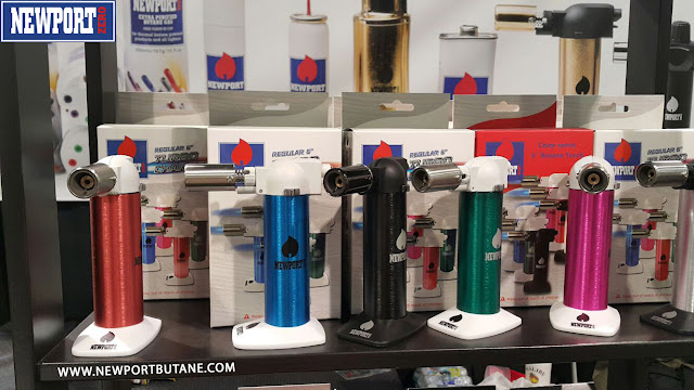 The jumbo butane torch by Newport is ideal in size, style and performance. At 10" in height, this butane torch is large and heavy duty, packing enough power to be used in outdoor camping.